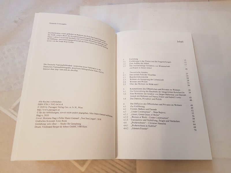 Romana Hagyo: Über das Wohnen im Bilde sein. In künstlerischer Zusammenarbeit mit Silke Maier-Gamauf. Passagen Verlag 2020, https://www.passagen.at/gesamtverzeichnis/architektur/ueber-das-wohnen-im-bilde-sein/